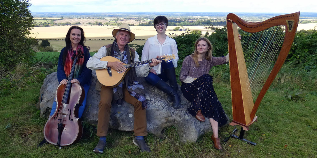 There is a tapestry of multi-instrumental acoustic sounds and harmonies around each song and tune. Becki Luff’s luscious Celtic harp is complemented by Jacqui Johnson’s superb cello, backed by Jon’s bouzouki, guitar, whistles and bodhran. The warm vocals of Sarah Fell combine with Jon’s rich baritone. Moonrakers now have five commercially produced albums under their belt and have received glowing reviews in the music press (“highly infectious”- Maverick; “fine organic collection of apt musicianship” – Earbuzz). They’ve appeared at folk festivals in Oxford, Broadstairs, Wantage, Bunkfest, Guildford, Cropredy, Towersey, Witney, Penn, Lechlade, Alcester, Shennington and Wycombe over the last few years.